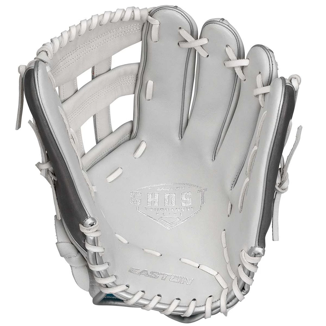 The 12.75″ Easton Ghost Tournament Elite fastpitch softball glove is designed for the high school and travel ball outfielders that might not yet have the hand strength of the college player. This glove is handcrafted with Diamond Pro Steer USA leather and a supple leather lining for added comfort and feel. The Quantum Closure System is fully adjustable for a tighter, more secure fit and optimal control. Professional grade rawhide laces add durability, while the snakeskin embossed leather accents and metallic chrome binding add extra flare.