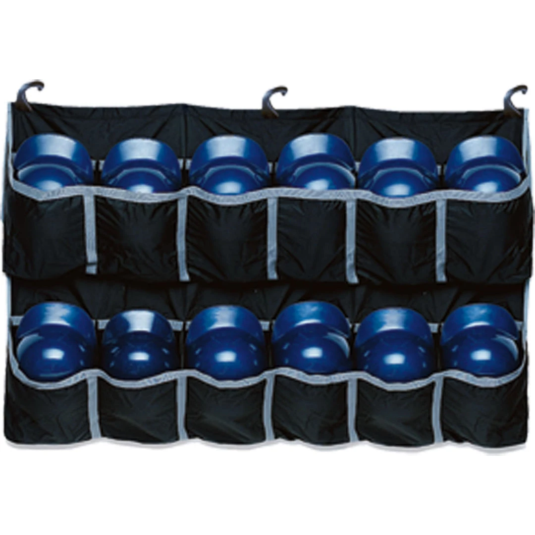 Easton’s Team Hanging Helmet Bag holds twelve helmets for easy access during games. Strong nylon straps and the Easton “J” fence hooks mean it’s stable and durable during use. After the game, it rolls up and has handles for easy carrying.