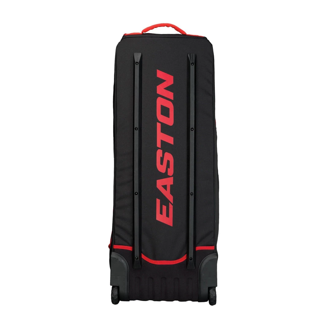 The new Easton Dugout Wheeled Bag is adurable equipment wheeled bag perfect for any player and theirgear. Ahard one-piece molded base providesstability and durabilityto the bottom of the bag. Thepadded bat compartment that can store and protect up to 5 bats, and an oversized large-mouth opening with YKK zippers provideseasy access into themainbagcompartment. Rollup to games or practicesthrough any terrain with the rugged inline wheels of the Dugout Wheeled bag.