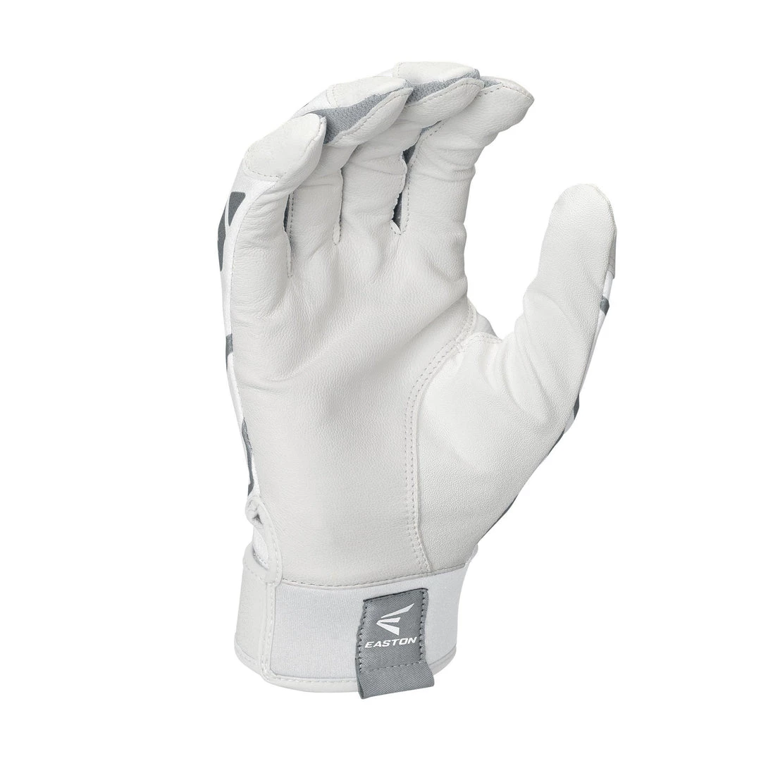 The batting gloves that you can count on, Easton’s new Gametime batting gloves features a smooth goatskin palm with synthetic thumb, sublimed flexible 4-way stretch mesh and 40mm (30mm band for YOUTH) neoprene band with branded pull tab.