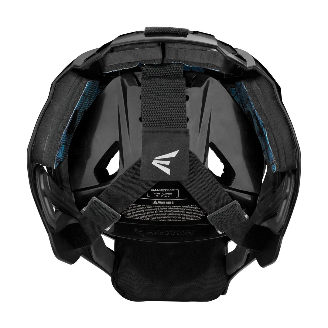 Easton’s Gametime catcher’s helmet features a solid gloss ABS plastic shell with strategically placed vents for increased airflow, and a steel cage redesigned to give players maximum visibility behind the plate. The comfort stacked foam on the inside of the helmet features a BioDri moisture control fabric liner, and the ergonomic chin cup design provides a better fit and allows for improved player communication. The Gametime catcher’s helmet features an extra wide rear top strap for secure locked-in adjustment for a better fit, and meets the NOCSAE standard for all levels of play. It is available in Large and Small sizes.