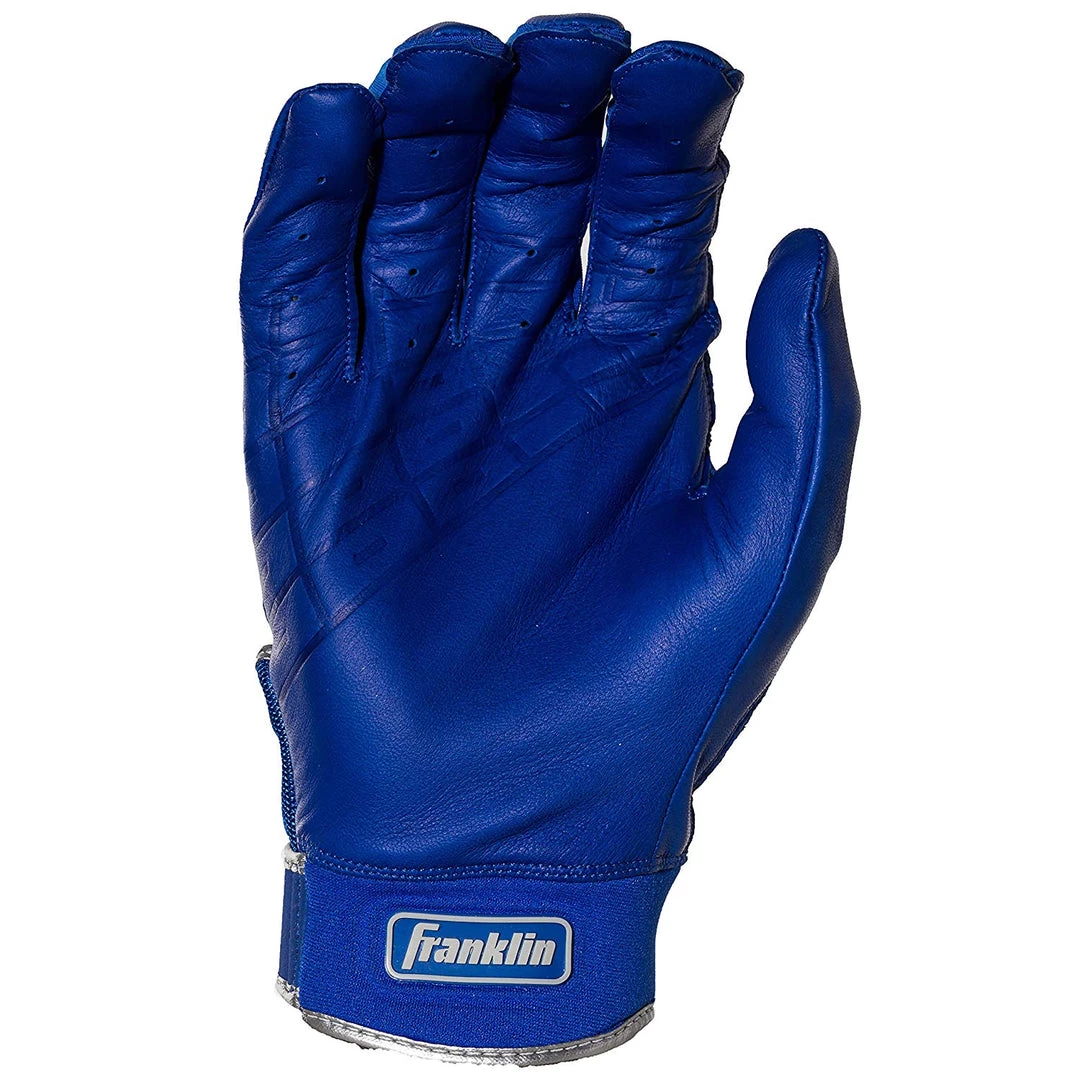Your young slugger will show the confidence of a pro when they step up to the plate wearing a pair of Franklin Adult Powerstrap Chrome Batting Gloves. Combining premium sheepskin leather palms with a revolutionary wrist-fastening closure system, these adult batting gloves will improve their grip and bat control with a distraction-free fit and feel so they can focus on the next pitch.