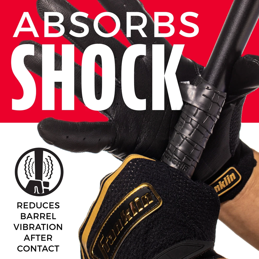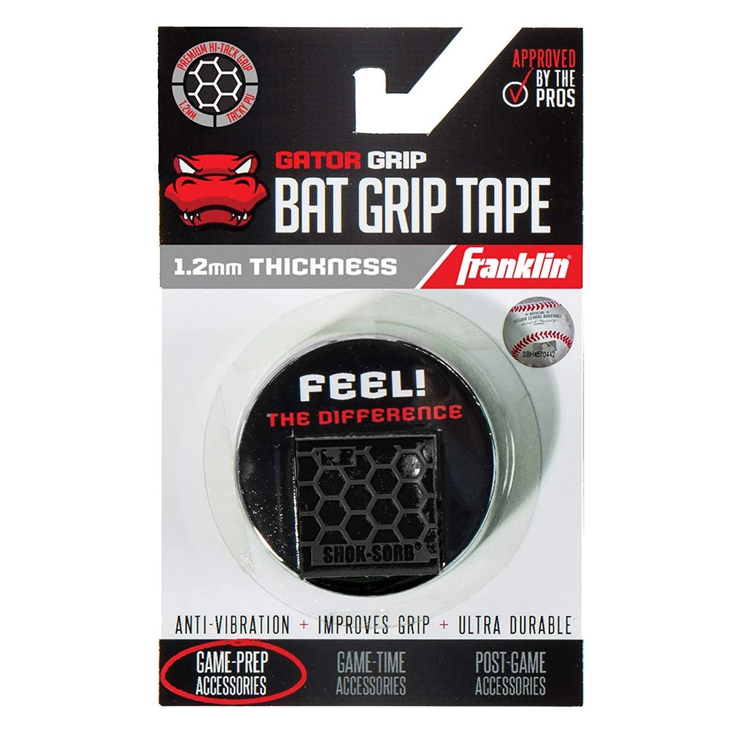 With 1.2mm thickness, the Franklin Sports Gator Grip Bat Tape helps absorb shock and reduces bat vibration after contact to eliminate hand sting. Engineered to improve bat grip during practice or competition without adjustments, our Bat Grip Tape is constructed with a premium tensile strength and extended life-span.