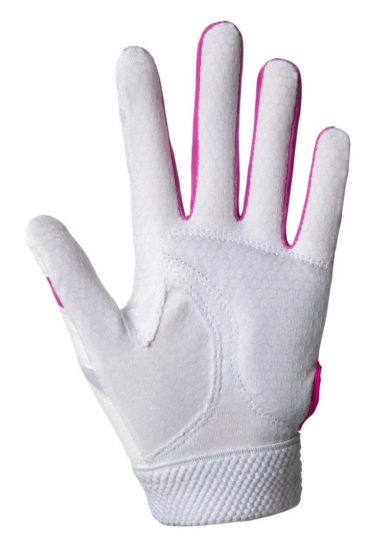 Created with direct input from softball legend Jennie Finch, the Finch Youth Softball Batting Glove is designed with the softball player’s specific needs in focus. Features a padded nonslip Mizuno ShockPalm to absorb vibration for less sting and better comfort. Made with an FlexMesh back designed to increase flexibility and breathability.