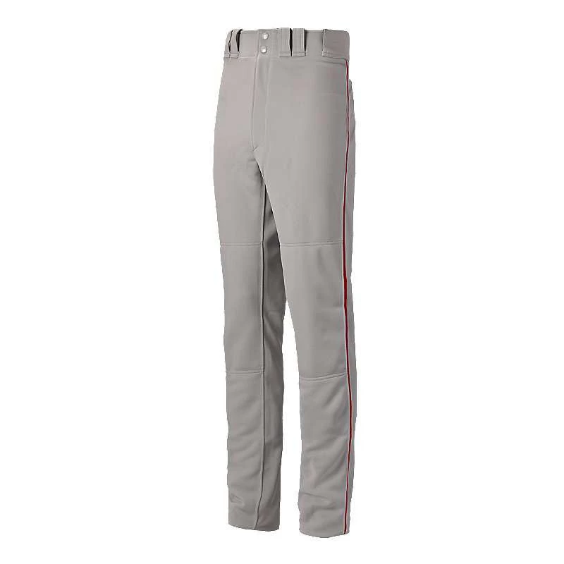 Mizuno Men’s Premier Pro Piped Baseball Pant G2 – Pro player fit. – Tunnel-belt-loop waist. – Fly front with extended two-snap closure. – Two set-in back pockets with button closure. – Double knee. – Hemmed bottom. – 100% Polyester Double Knit