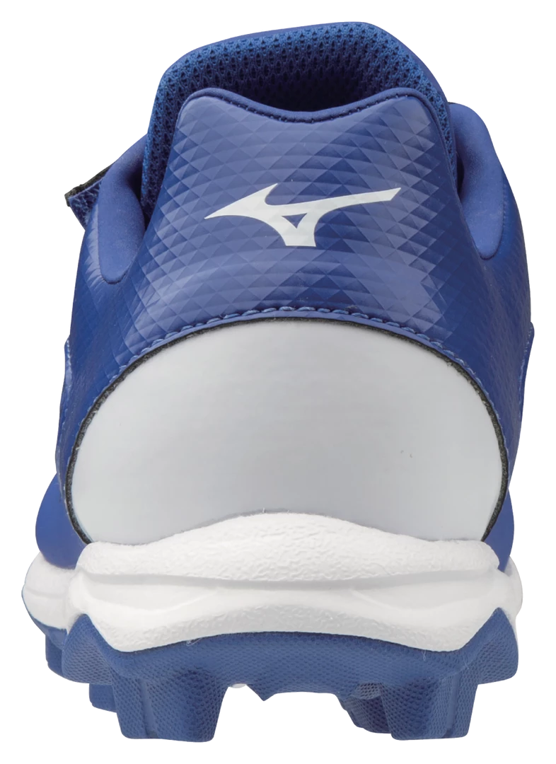The Mizuno Select Nine JR is a top rubber molded youth cleat option suitable for all field types, while offering an EVA midsole for enhanced comfort and durability. Also features Mizuno Wave technology to reduce pressure, while adding comfort and stability during athletic movements around the diamond. Features one Velcro strap and faux laces add a convenience detail to do away with between-inning shoe tying!