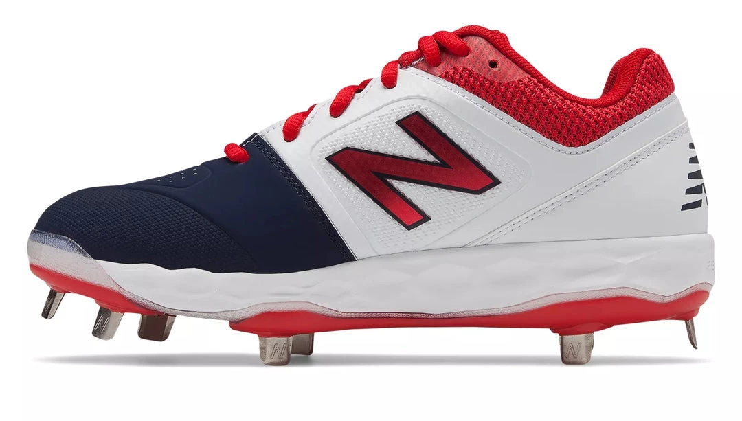 New Balance SMVELOv1 Fastpitch Metal Cleat Low-Cut – White Navy Red Softball