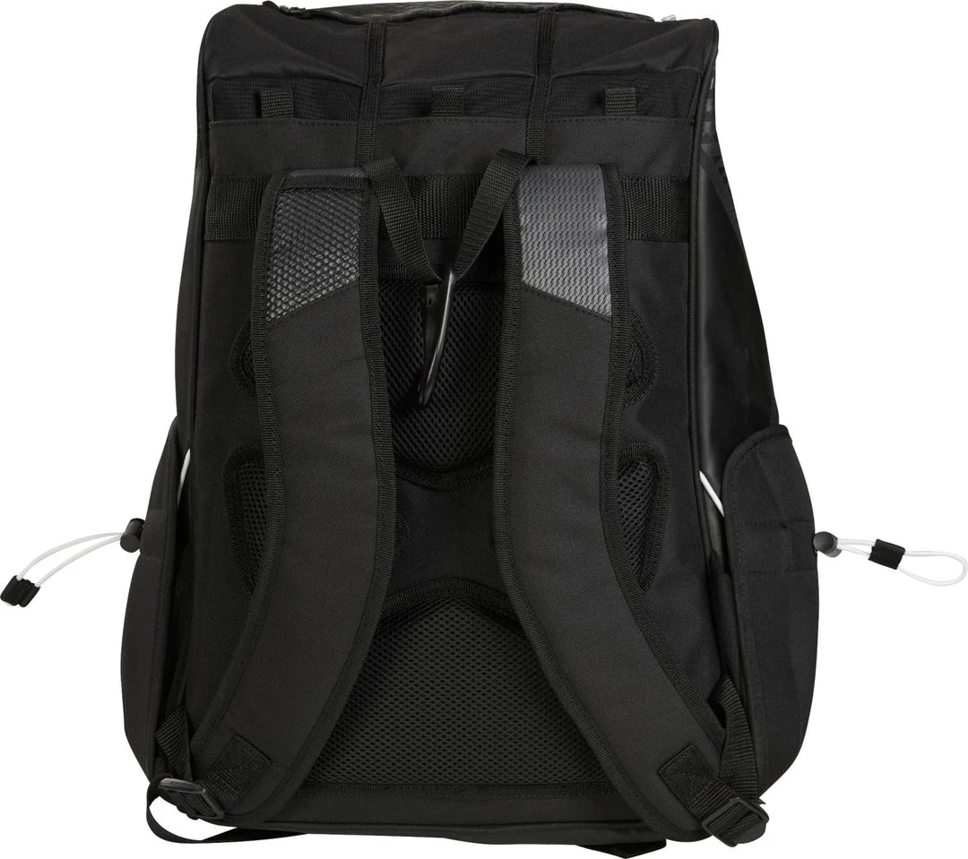 In addition, this backpack holds three bats, and also has external shoe compartments so you don’t have to put dirty cleats in with other items. The fence hook allows you to hang the bag on a dugout fence while the main compartment opens up into a game time shelf for easy access to gear during games.
