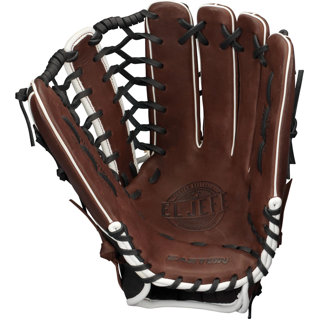 Easton’s new El Jefe Slowpitch Series features softball specific patterns designed for pocket depth and impact durability. The Diamond Pro Steer™ leather palm and shell, combined with a soft oiled classic palm and finger lining, provides players with comfort and feel, while the pro grade rawhide laces provide extra pocket durability.