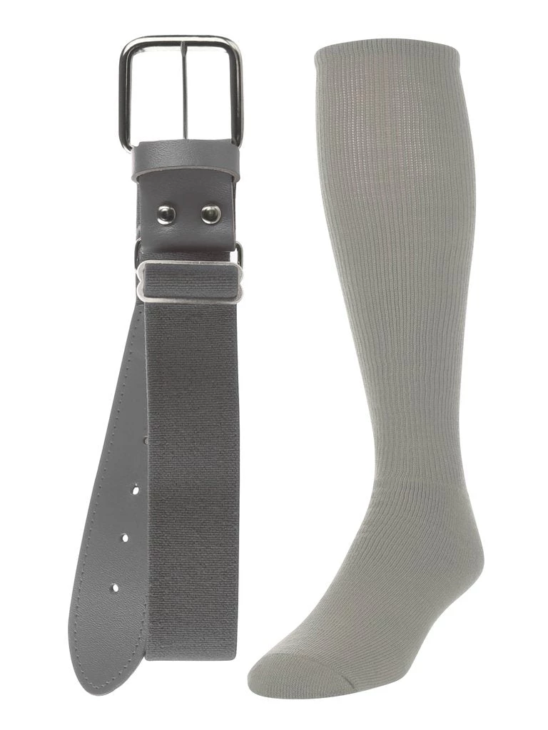 BASEBALL SOCK/BELT COMBO SET: Our Baseball or Softball Sock/Belt combo includes 1 pair of solid colored athletic over the calf socks, and a perfectly coordinating elastic belt that is that can be easily adjusted to accommodate most waistlines.