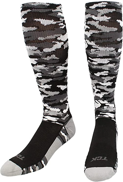 TCK Woodland Camo Athletic Performance Crew Socks are a must have for your next game, outing, or practice. Featuring moisture control yarns, breathable mesh, ergonomic cushion, arch compression, and a double welt top, they provide maximum athletic performance. These socks are suitable for both boys and girls and come in youth and adult sizes. Our crew socks are great for basketball, football, lacrosse, wrestling, volleyball and more!